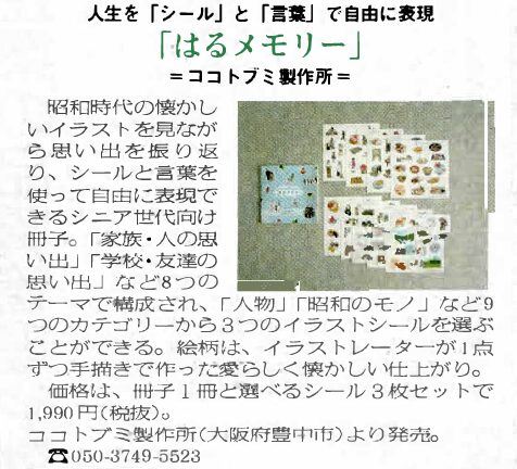 6/10日のシルバー産業新聞に、弊社商品の『はるメモリー』を掲載していただきました。